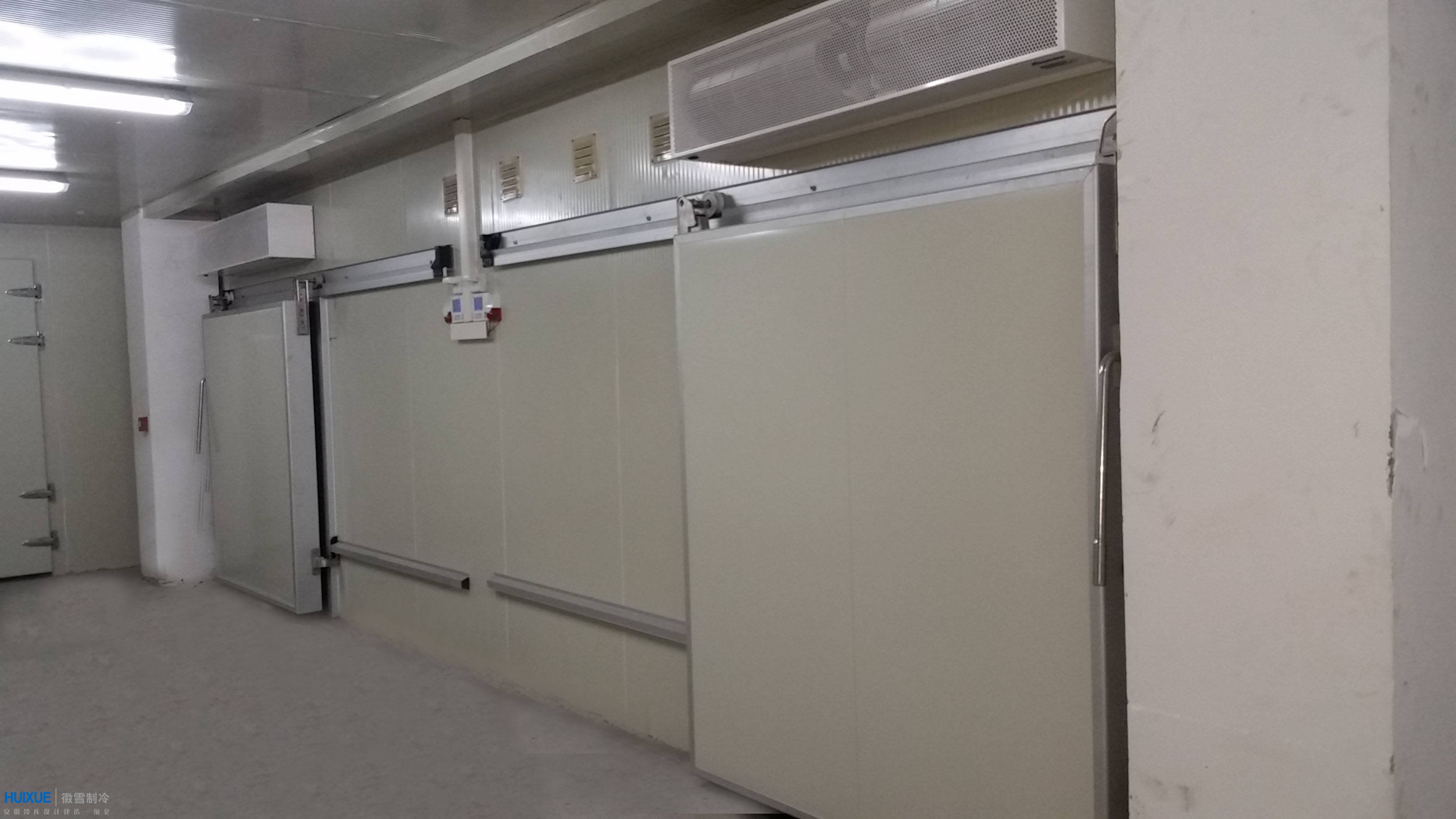 本次為天長(zhǎng)小龍坎火鍋餐飲設(shè)計(jì)建造的為座冷凍庫(kù)和座保鮮冷庫(kù),其中冷凍庫(kù)設(shè)計(jì)溫度-18度、保鮮冷庫(kù)設(shè)計(jì)溫度0度。冷庫(kù)保溫系統(tǒng)采用徽雪自主研發(fā)生產(chǎn)的100MM厚高密度雙面彩鋼聚氨酯保溫板,制冷機(jī)組采用美愛(ài)默生谷輪風(fēng)冷制冷設(shè)備。